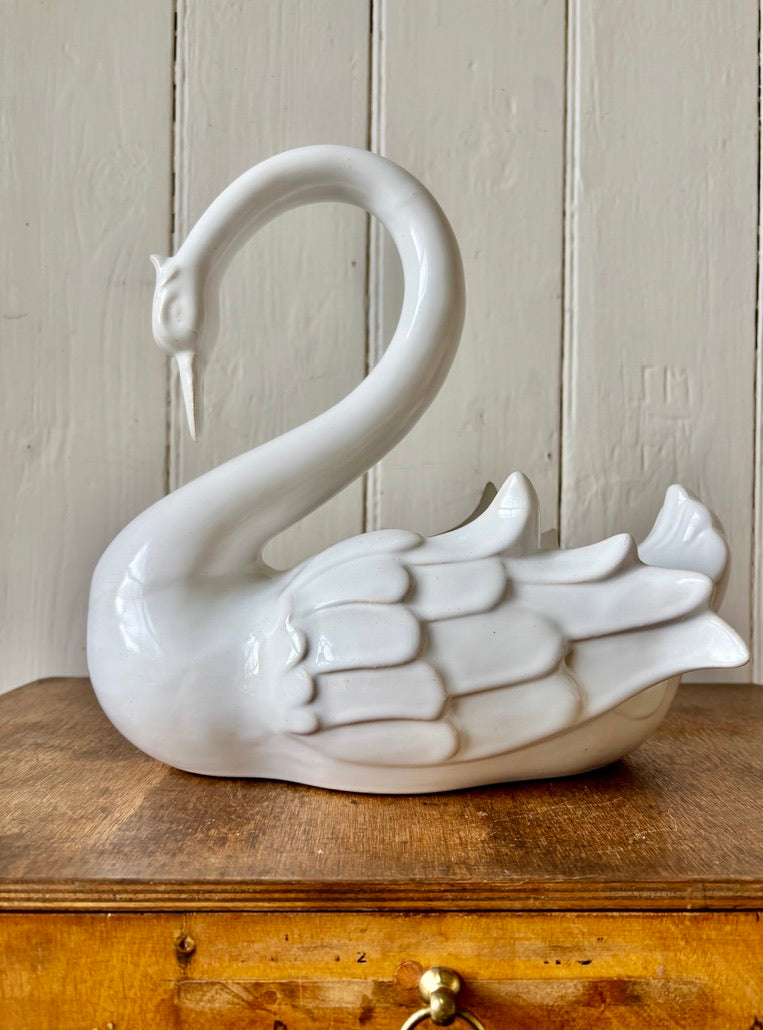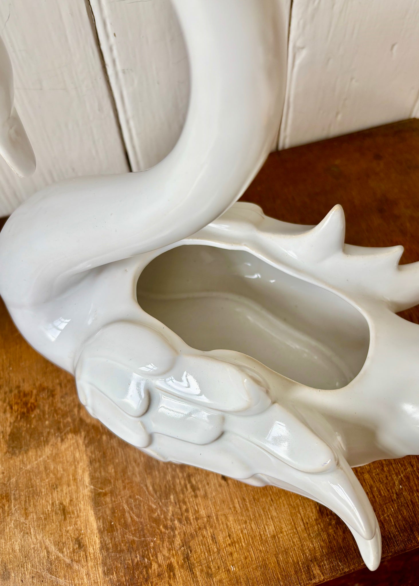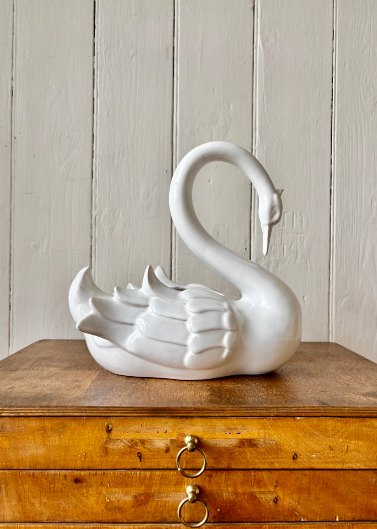A magical stylised swan which forms a planter or vase. This piece is beautifully modelled with super detailing. Elegant and stylish in white.