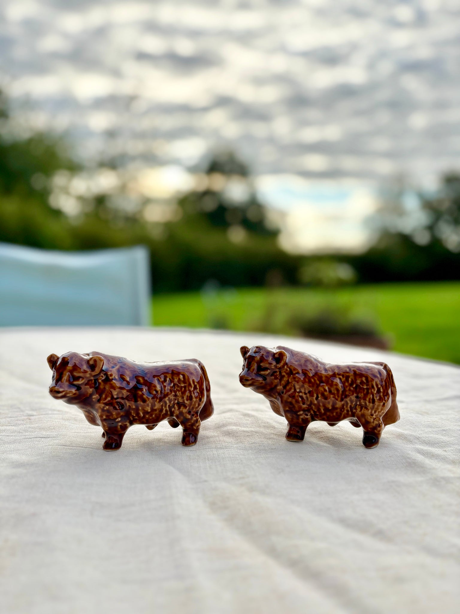 A mini highland cow, perfect in every detail and originally used as a whiskey or hip flask (with a cork in the aperture). These could be used on your home bar to hold cocktail sticks and other drinks accessories, as an incense burner, or purely for decorative purposes - the perfect mini gift for anyone who loves a cow! Super colour and glaze.