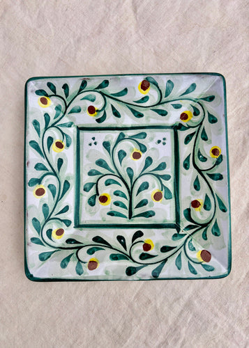 Square, leafy hand painted dish by Porches