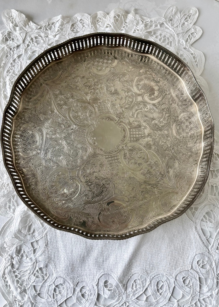 • Load image into Gallery viewer, Silver plated pressed galleried tray