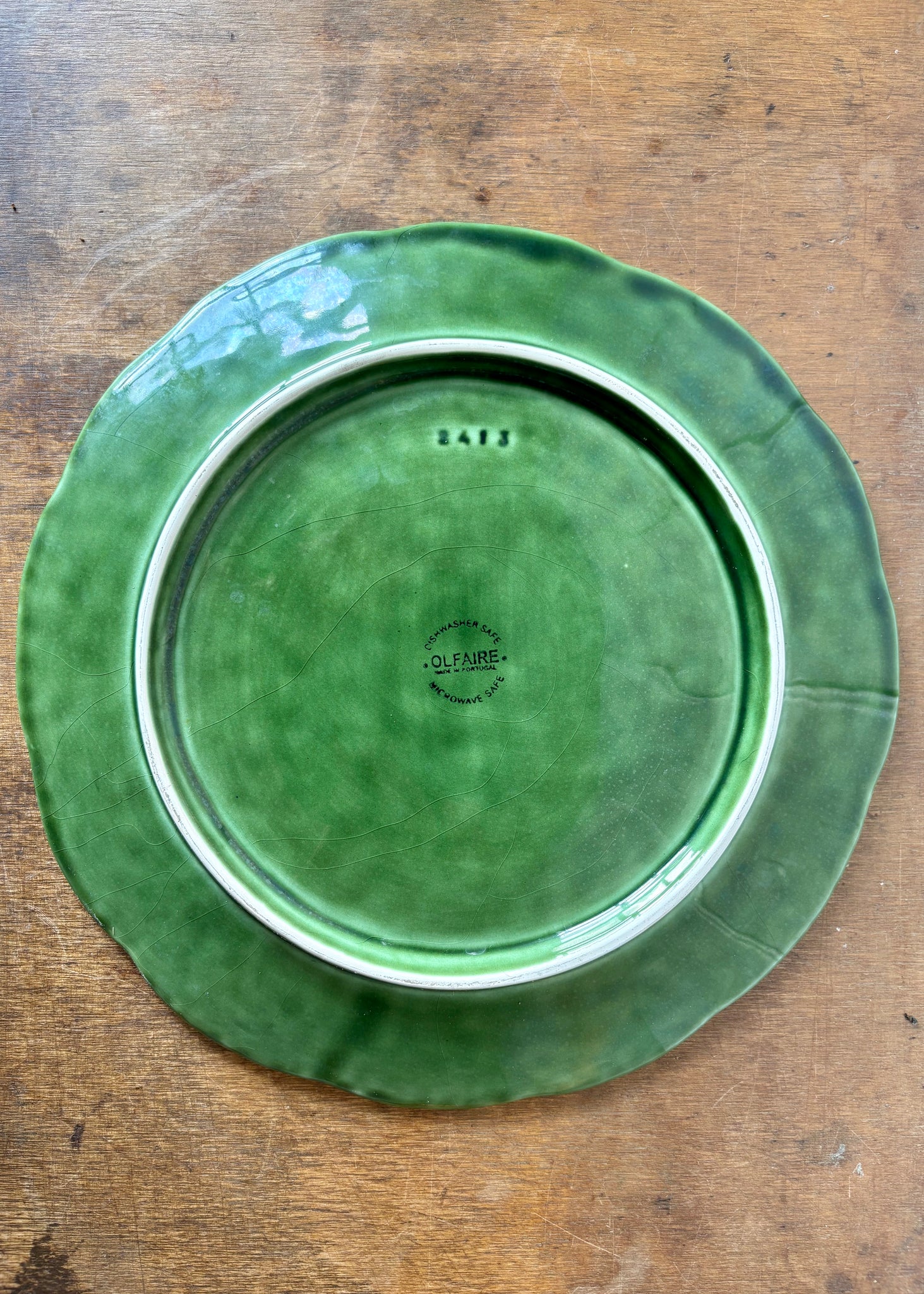 A green vintage cabbage ware plate with scalloped/leaf shaped rim, a super addition to your collection and perfect for your dresser, shelf or wall! Also a great size for everyday use and generous enough to work as a serving plate.